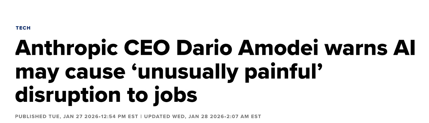 Dario Amodei, the CEO of Anthropic, has publicly predicted that AI will eliminate fifty percent of entry level white collar jobs within one to five years. Many in the industry think he’s being conservative. And this was before the February 5th models that shook Shumer.